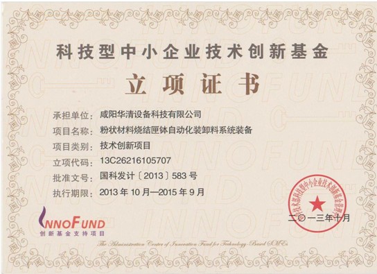 我公司獨(dú)立設(shè)計(jì)與制作的“粉狀材料燒結(jié)匣缽自動(dòng)化裝卸料系統(tǒng)裝備”喜獲2013年度國(guó)家科技型中小企業(yè)技術(shù)創(chuàng)新基金項(xiàng)目立項(xiàng)