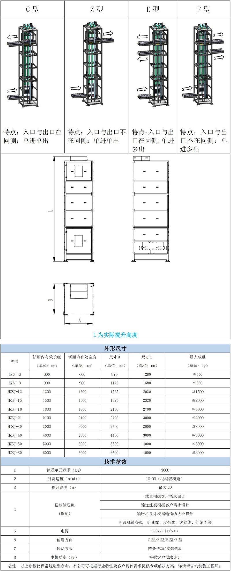 該設(shè)備結(jié)構(gòu)合理、運(yùn)行平穩(wěn)、高速靜音、安全可靠,承載量可達(dá)3噸,提升高度可達(dá)20米,安裝維護(hù)方便實(shí)用,是替代貨物電梯理想的貨物輸送設(shè)備。標(biāo)準(zhǔn)化的橋箱接口可方便選擇各種包裝箱、托盤(pán)、卡板等靈活多樣的工件形式。該設(shè)備配置多種防墜、互鎖等安全裝置,從而保證人身貨物安全,可廣泛應(yīng)用于汽車(chē)、食品、煙草、郵政、化工、輕工、機(jī)械、電子、食品、倉(cāng)儲(chǔ)物流等自動(dòng)化生產(chǎn)行業(yè)。